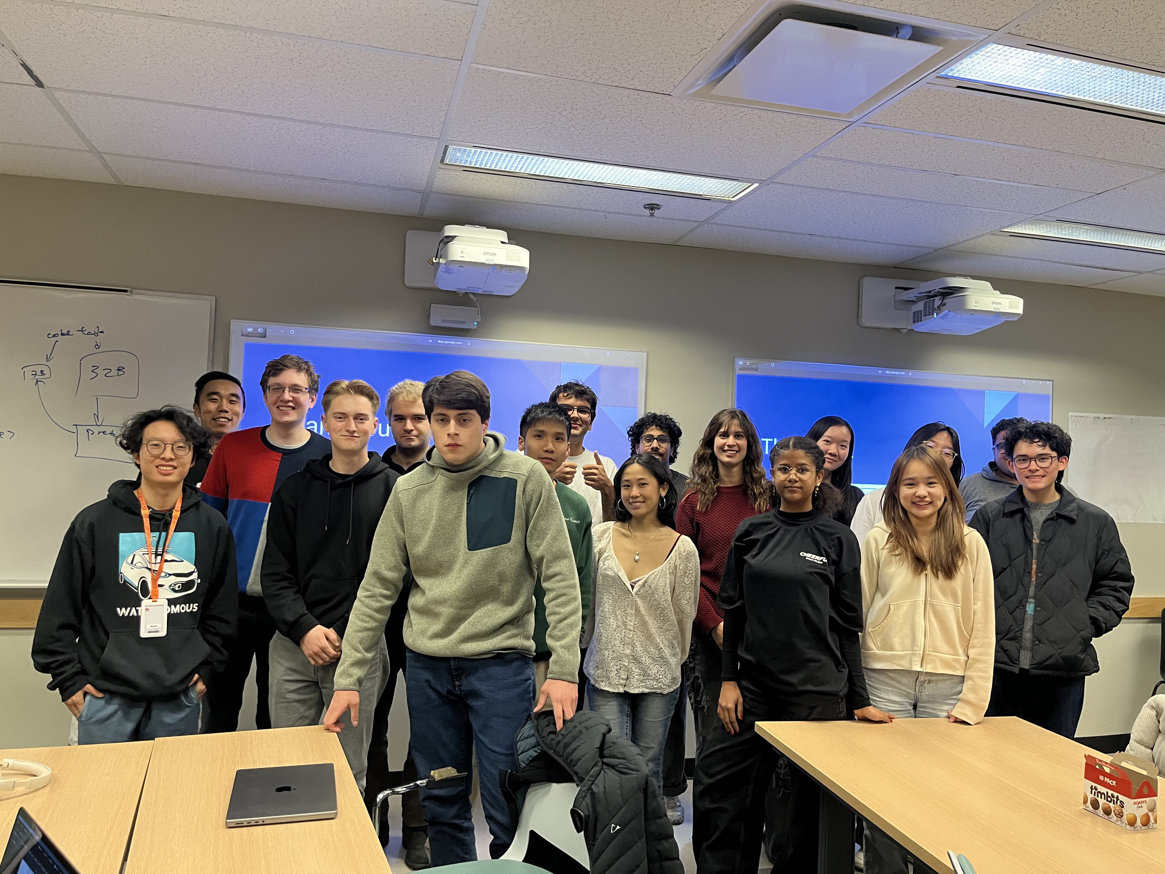 We are mainly a group of thinkers. Sometimes, we implement machine learning algorithms. Our current members encompasses students in Computer Science, Mathematics & Statistics, Biology, and Business & Finance. We welcome students from all backgrounds and levels of experience.
